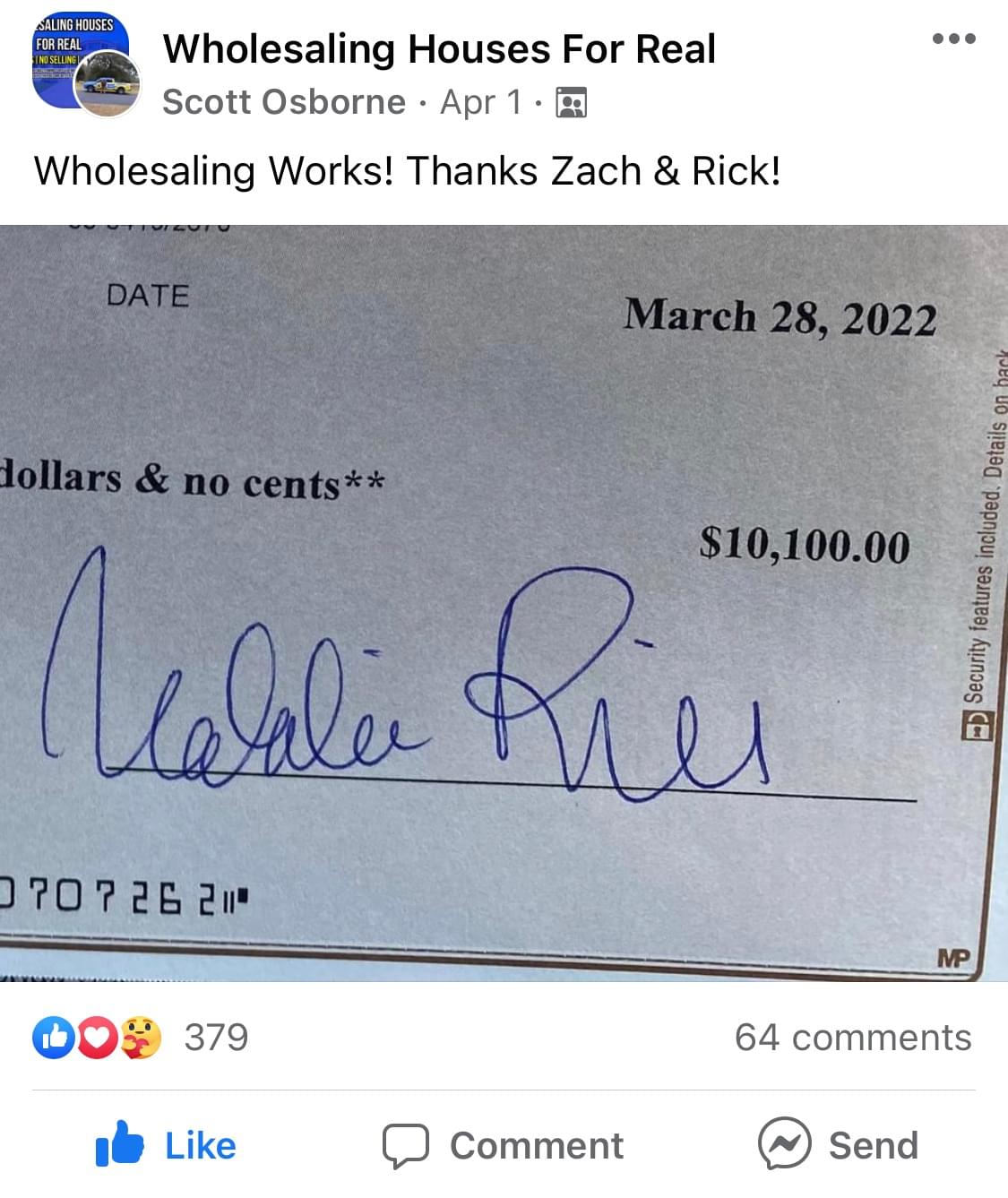 Mike got a nice $7,250 first deal check!