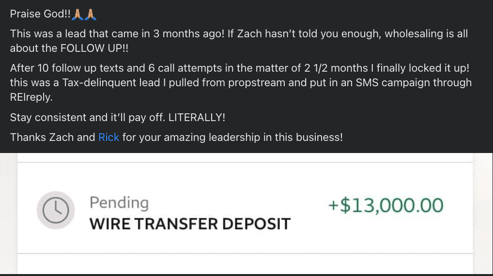 Another Student Crushed it with a $13,000 wholesaling deal!